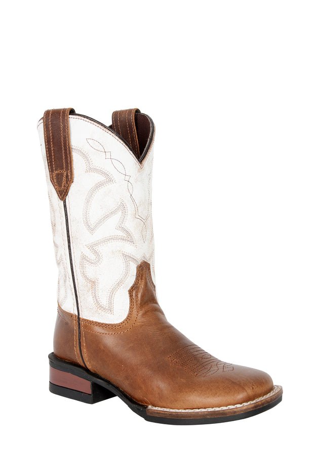 Colour - TAN FAUX LEATHER UPPER / BLACK WESTERN UNDERLAY ON SHAFT